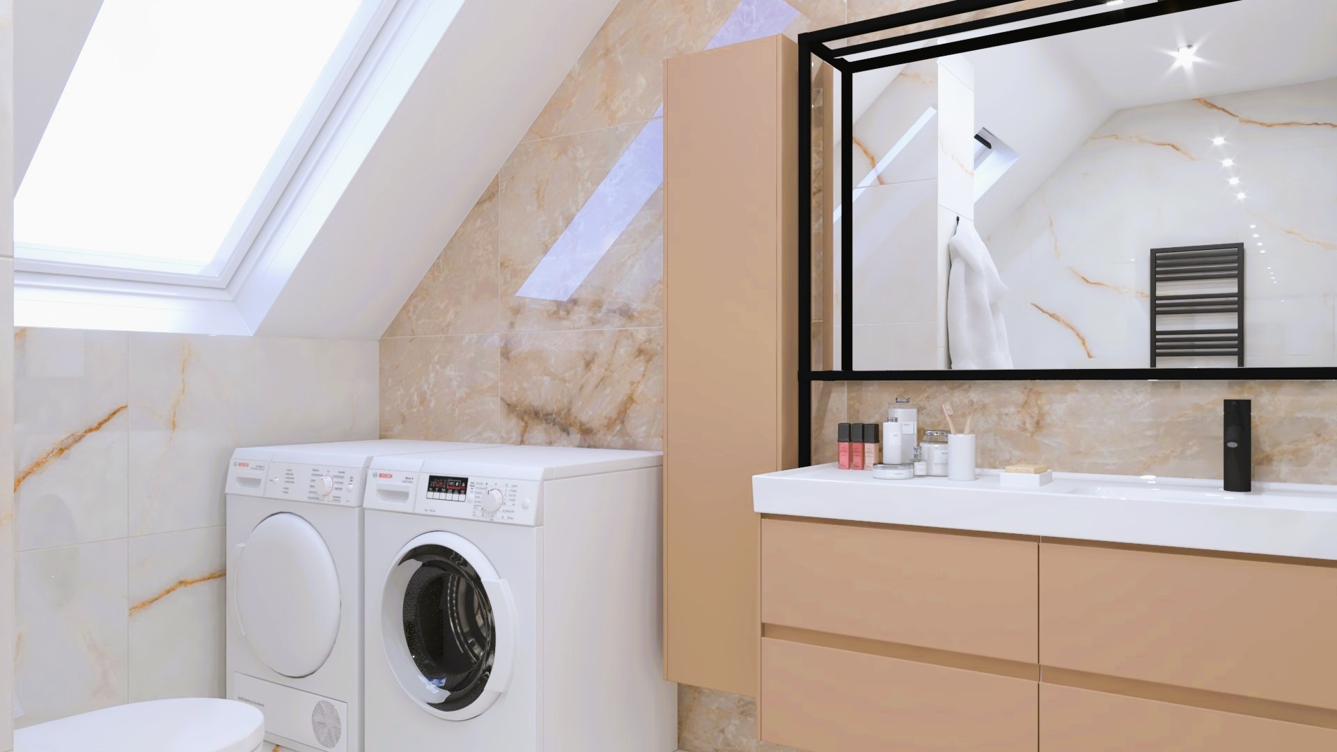 Burkolat: Atlas Concorde Log Icon 20x120 cm; Navarti Ziro Crema 36x80 cm; Cifre ke Maple 30x90 cm; szaniter: Elita, Méta, Geberit, Hansgrohe, Radaway