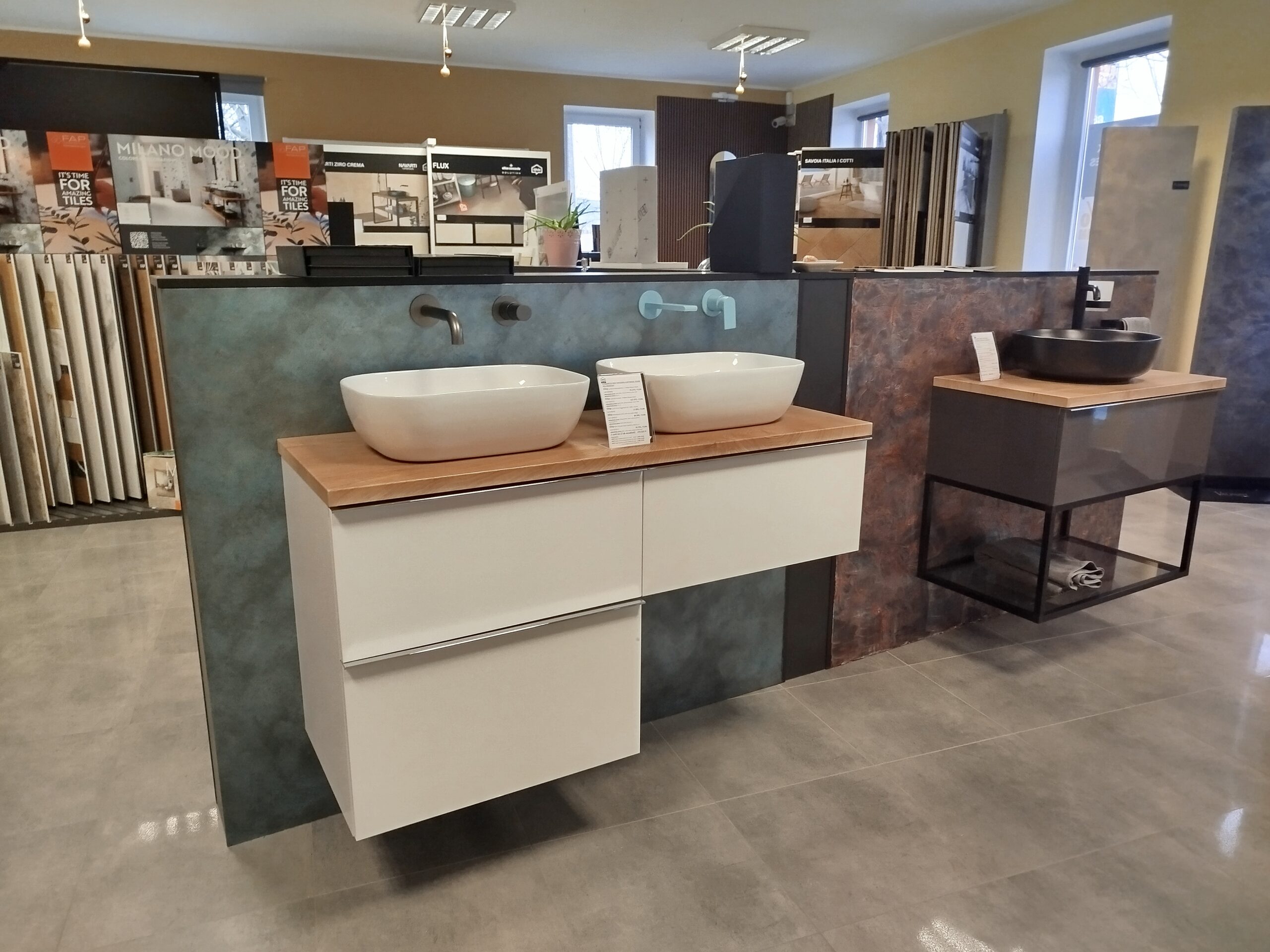 Burkolat : Mariner Cool ghost 120x120 cm; Mariner Cool shadow 120x120 cm; Flaviker Art Walls Shadow 60x120 cm; 120x280 cm; szaniter: Kludi,Elita,radaway,Arezzo