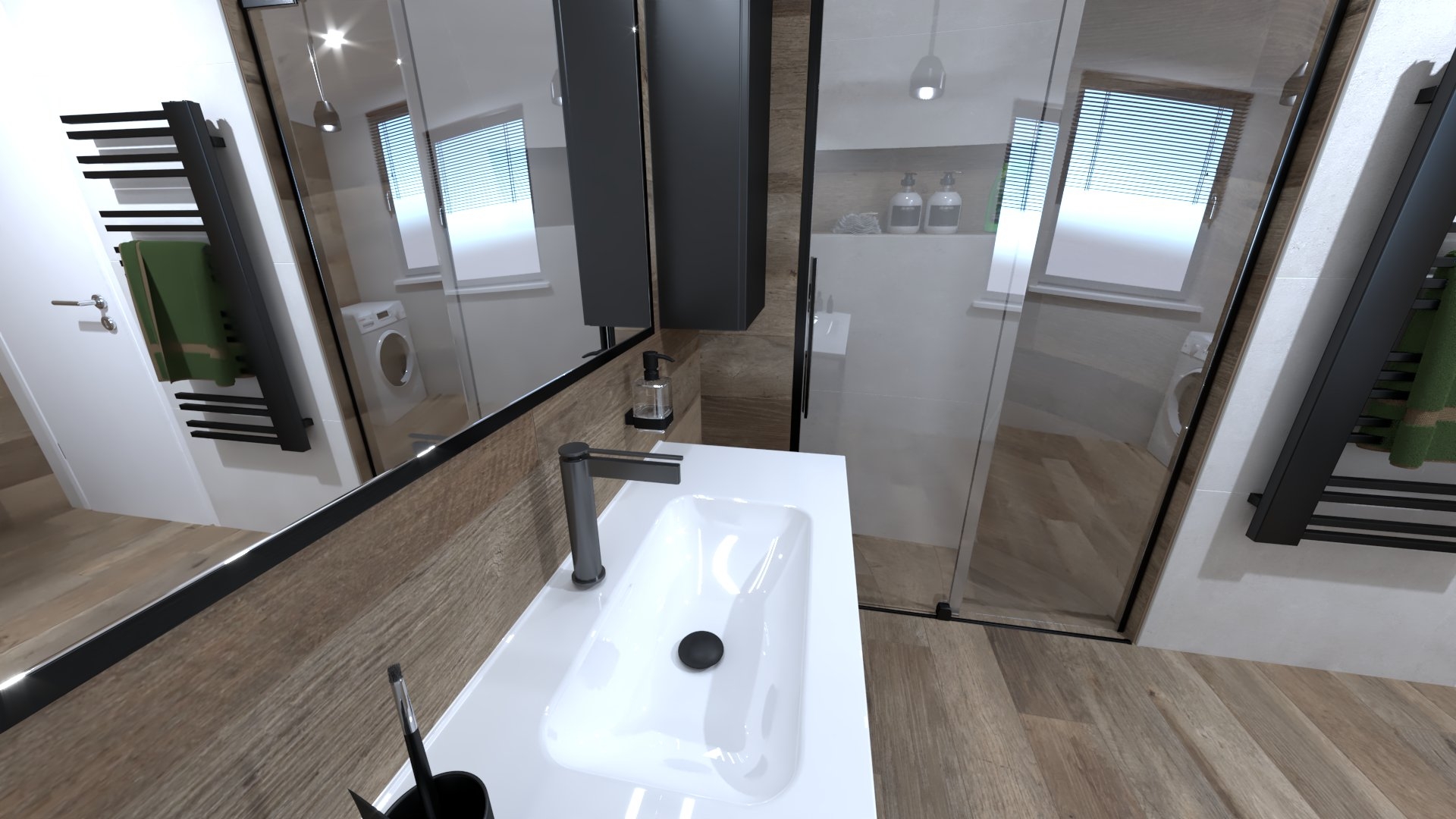 burkolat: Coem Afromosia Moro 15*75 cm; Coem Gascogne Bianco 40*60 cm; Coem Gascone Grigio 30*30 cm; szaniter: Radaway, Radeco, Hansgrohe, Elita