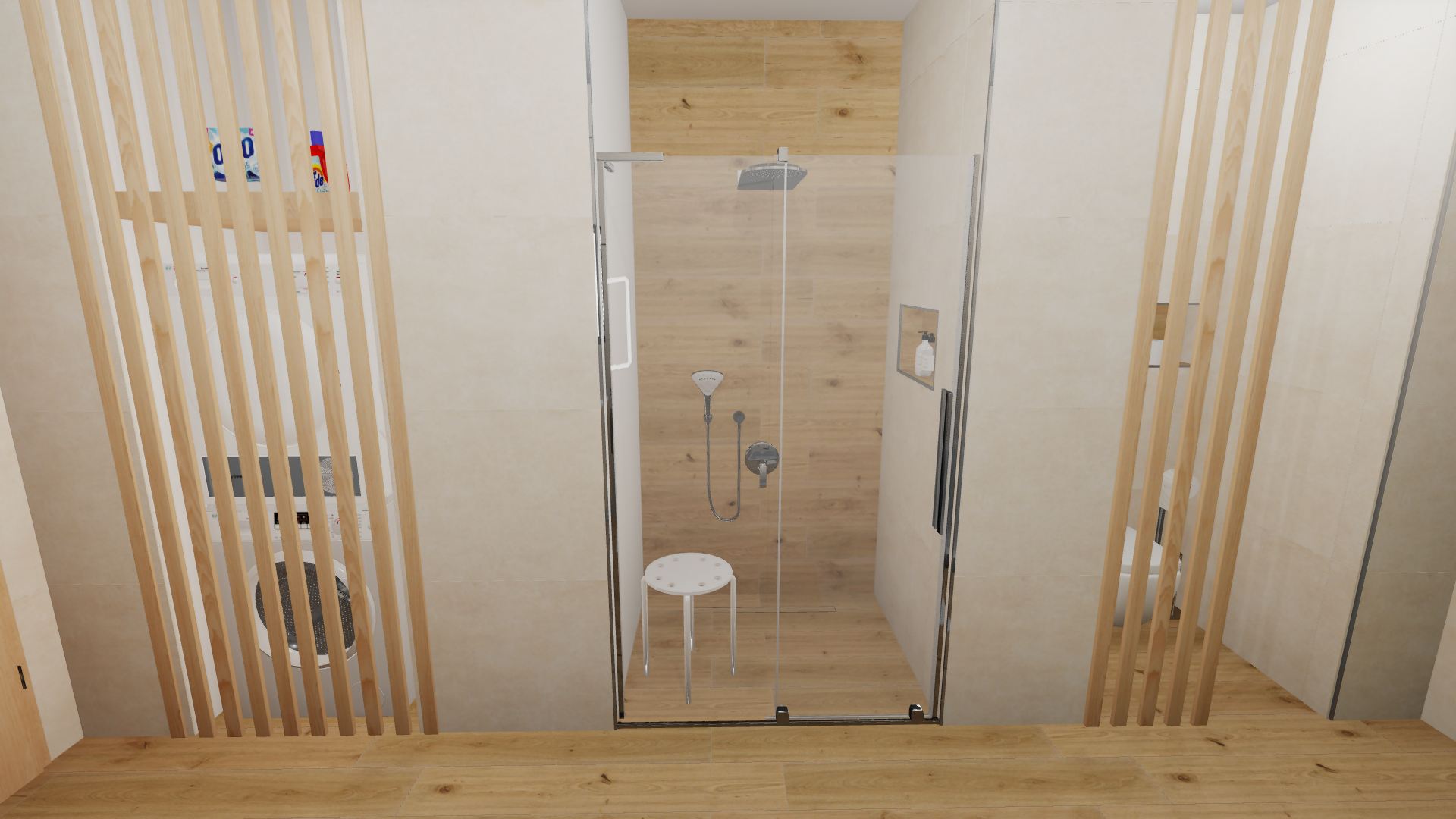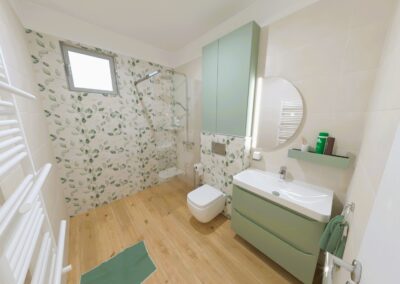 Burkolat: Fap Color line Deco 25*75 Fap Color line Beige 25*75 Fap Color Line Salvia 25*75 Fap Color Line Rope Beige 25*75 Fap Nest Maple 7,5*75 Szaniter: Radaway, Geberit,Arezzo, Elita